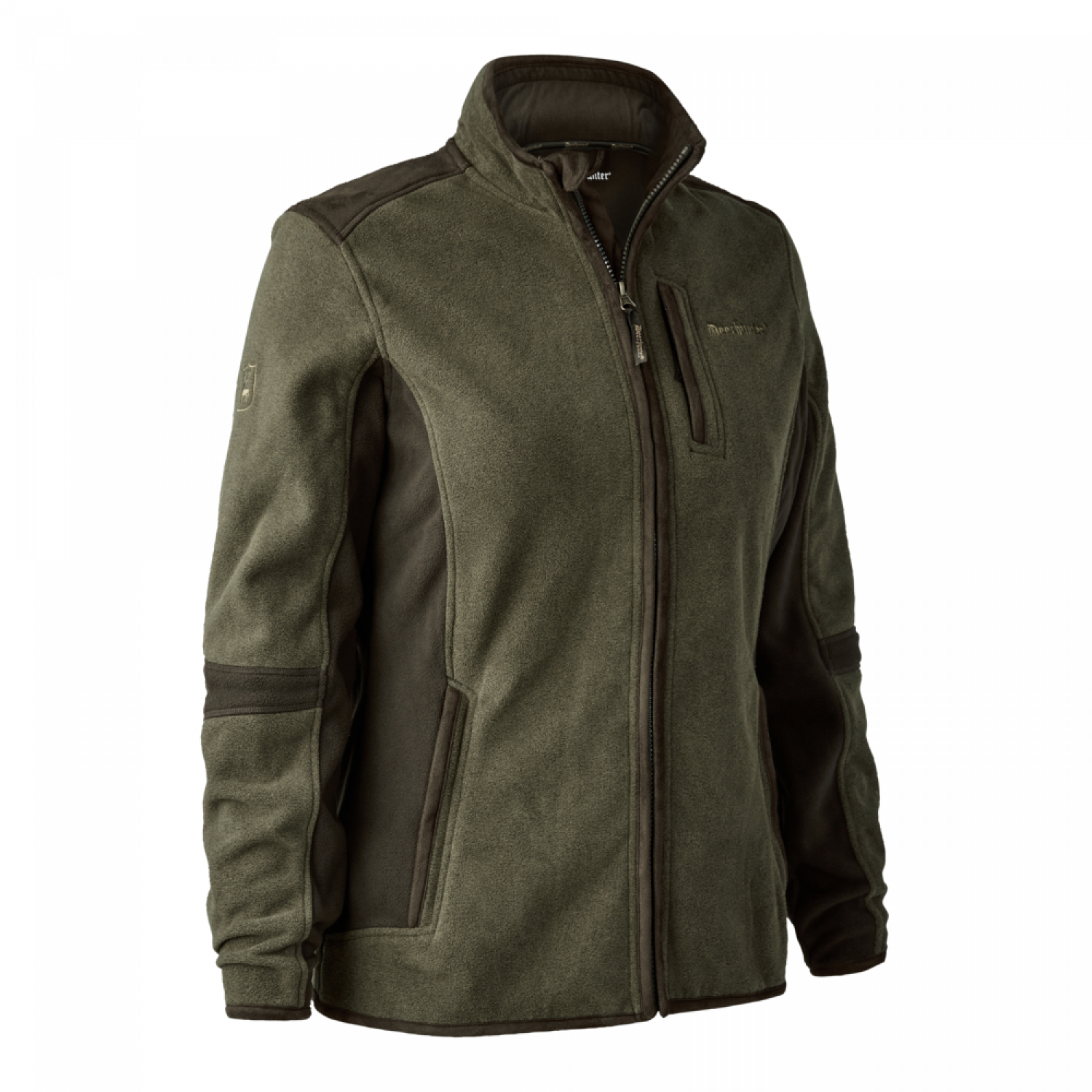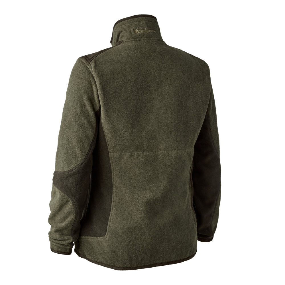 Rekbare randband van kunstsuède bij nek, ritssluiting middenvoor, zakken, mouwopeningen en onderkant